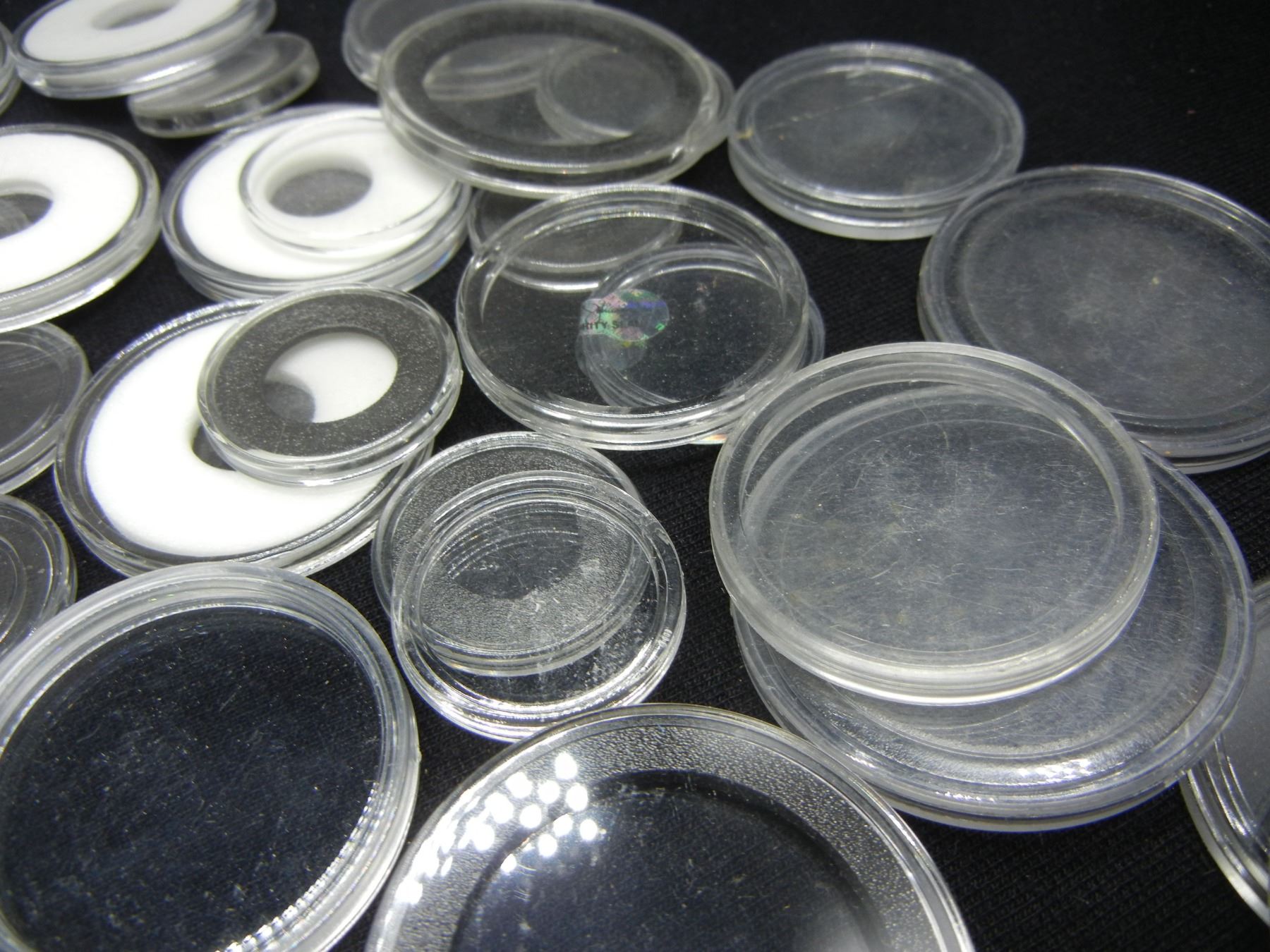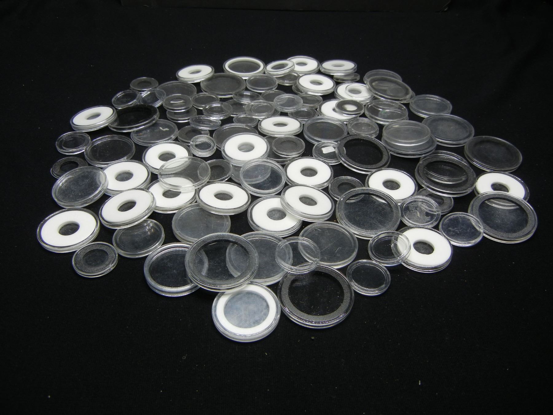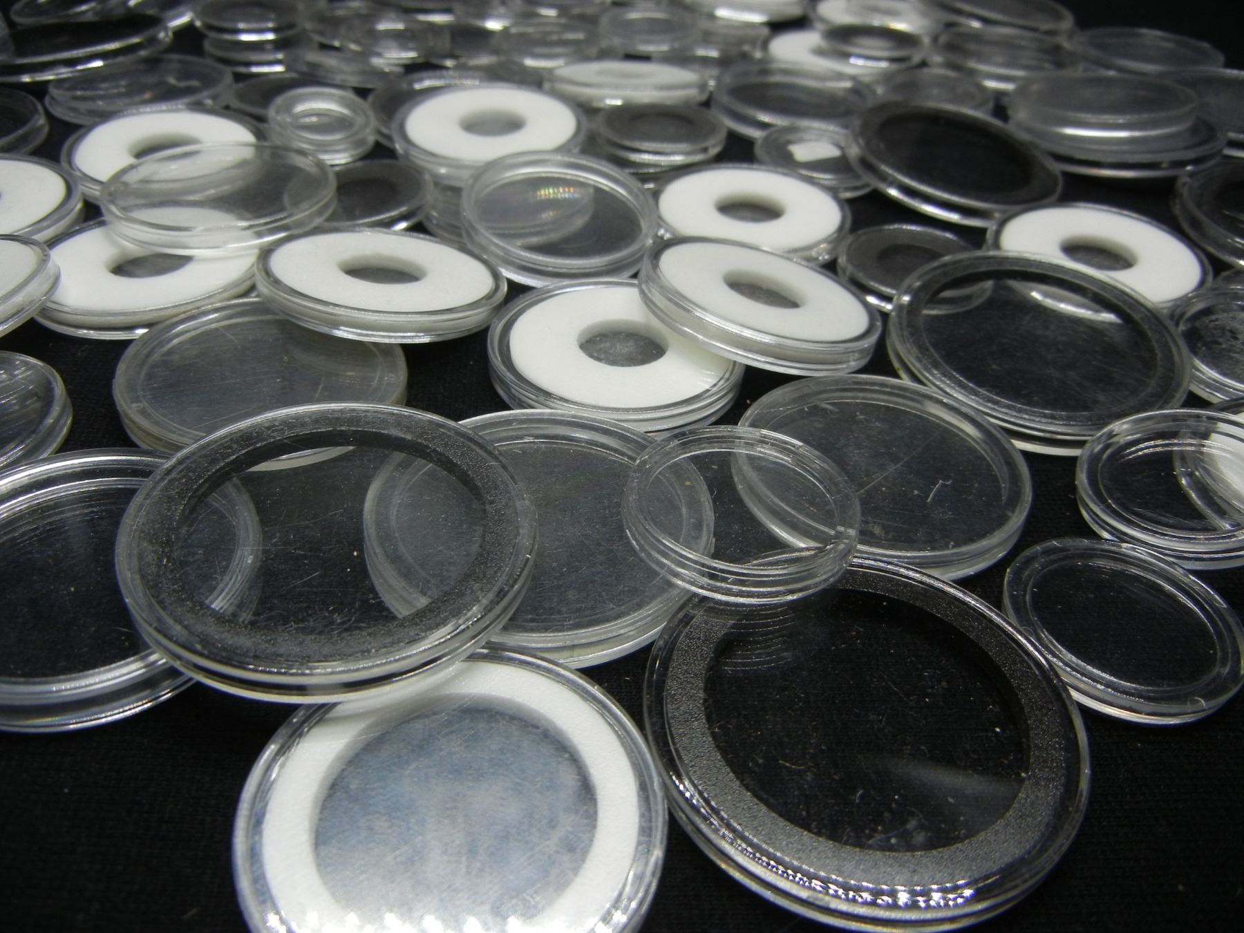 100 Coin Capsule Containers of Various Sizes and Denominations.