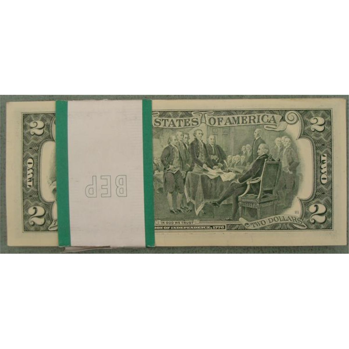 100 original bank wrapped 2003 A $2 notes, totaling $200. * Condition: Crisp UncirculatedMint mark: C (Philadelphia)Serial Numbers: ConsecutiveSerial numbers may be different from those shown *