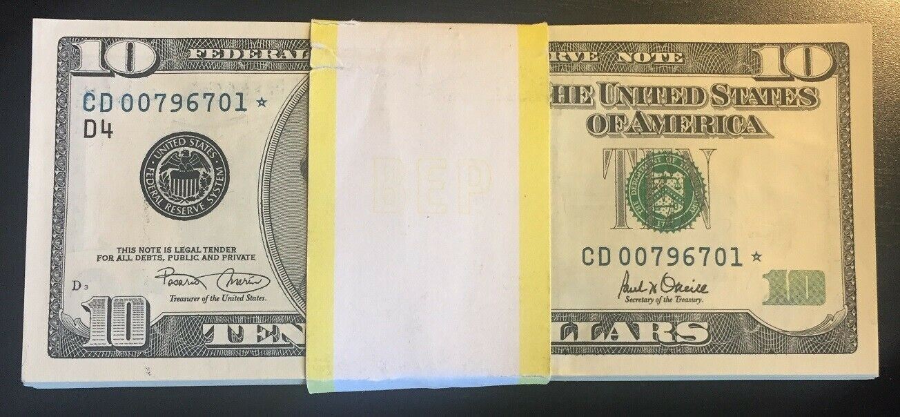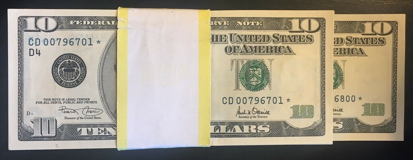 One 100 Consecutive 2001 $10 Federal Reserve Star Notes.