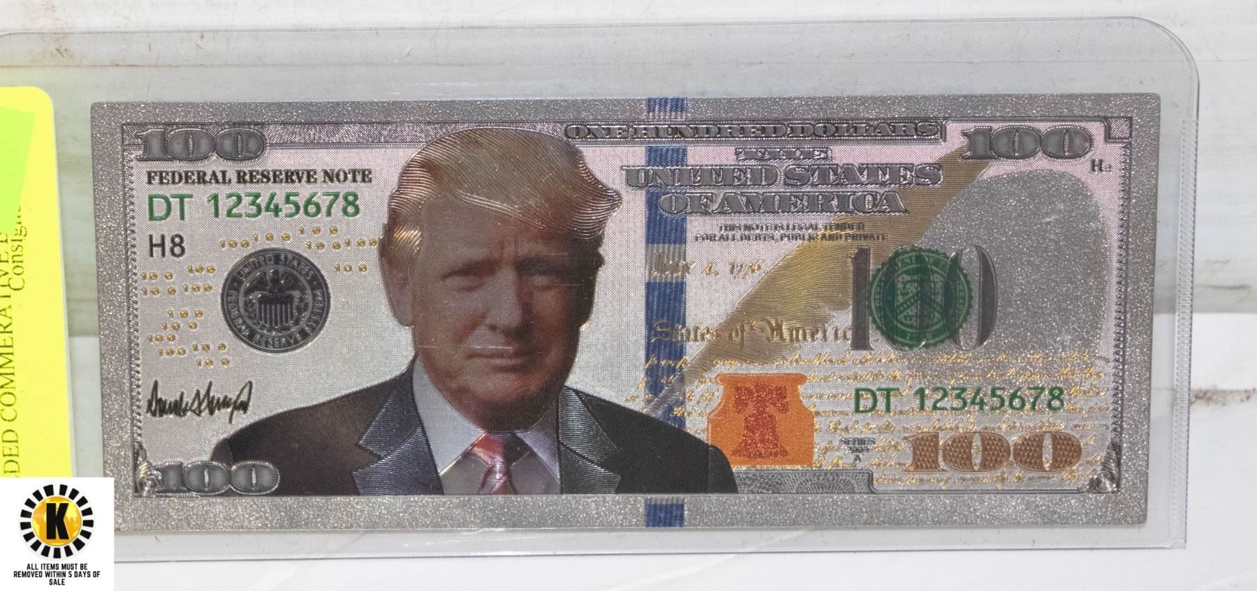 $100 DONALD JTRUMP SILVER GILDED COMMERATIVE BILL