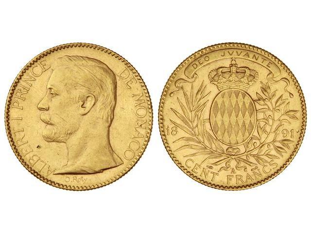 100 Francos. 1891-A. ALBERTO I. PARÍS. AU. (Golpecito de punzón en anverso y reverso). KM-105. MBC+.