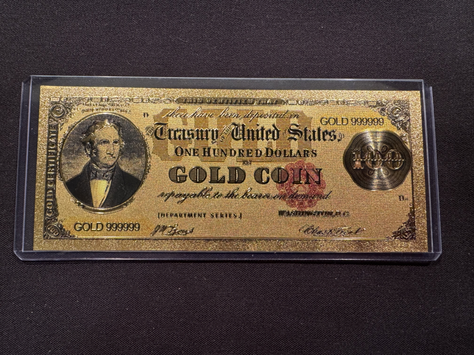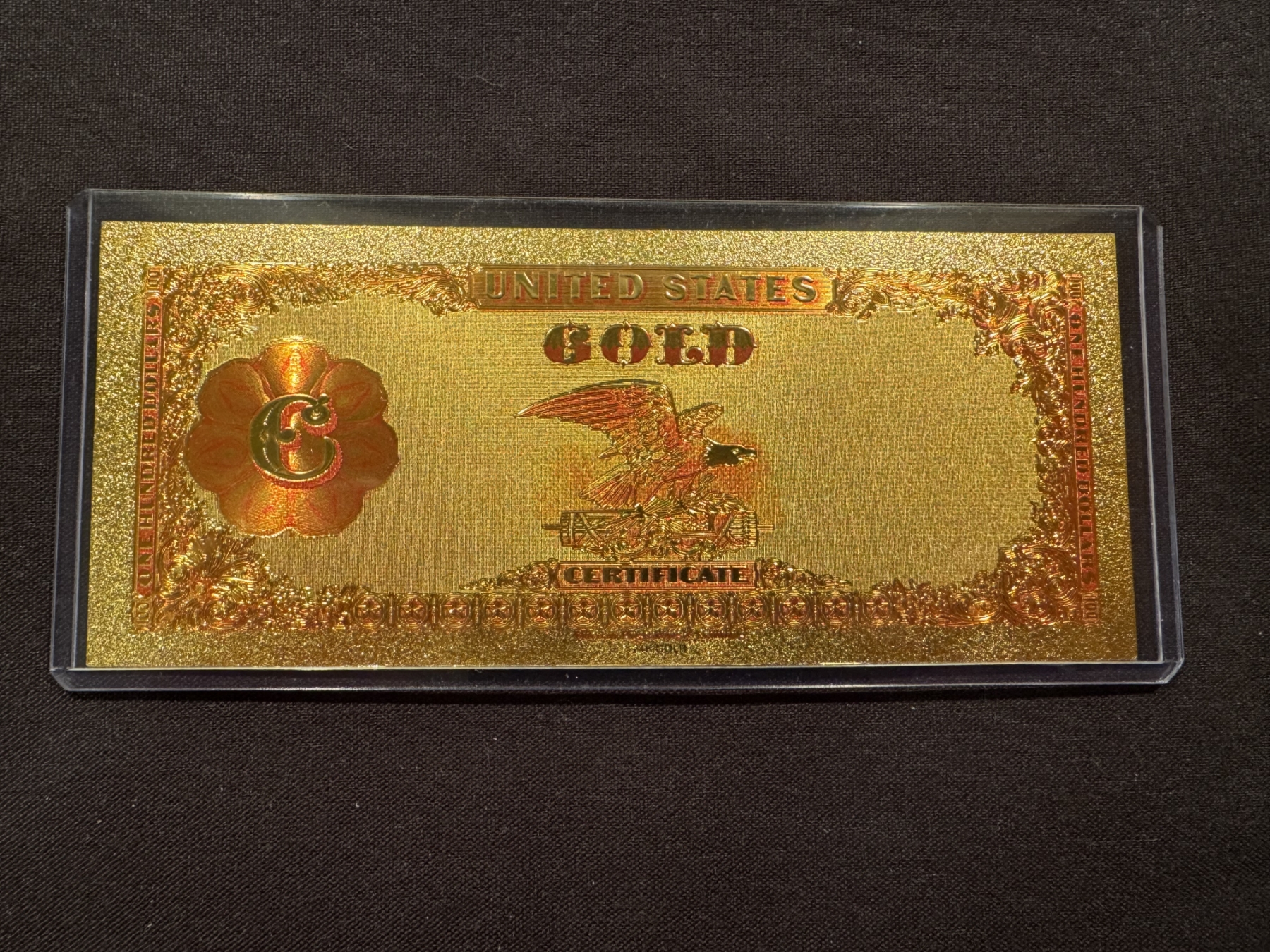 $100 Gold Certificate Gold Foil .999 - 24K Note In Protective Holder - Mint Condition