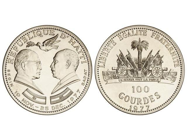 100 Gourdes. 1977. AR. Presidente Sadat y Begin. KM-132. PROOF.