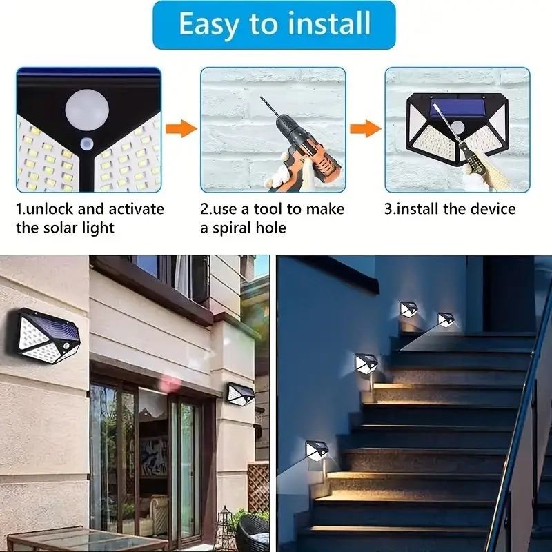 100 LED WATERPROOF WALL SENSOR LAMP SOLAR CHARGING