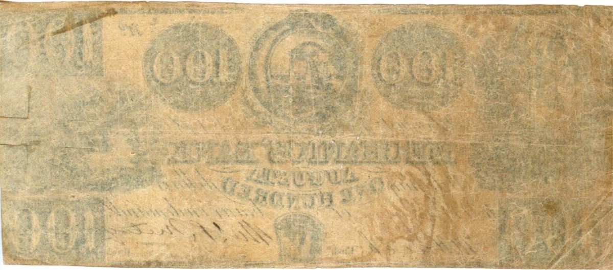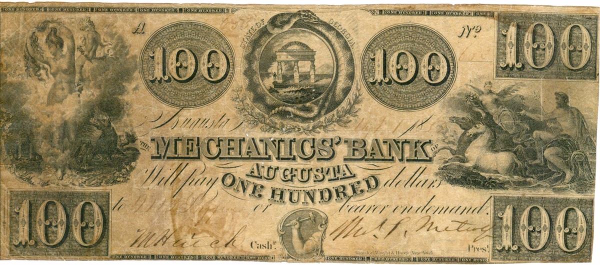 One $100 Mechanics' Bank of Augusta Georgia Large Note.