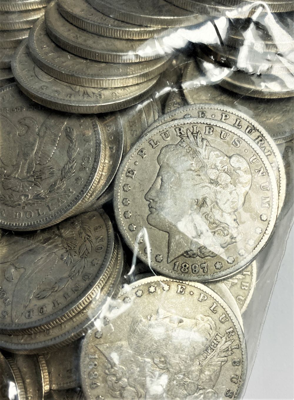 Winner shall receive the exact (100) Morgan Silver Dollars shown here.