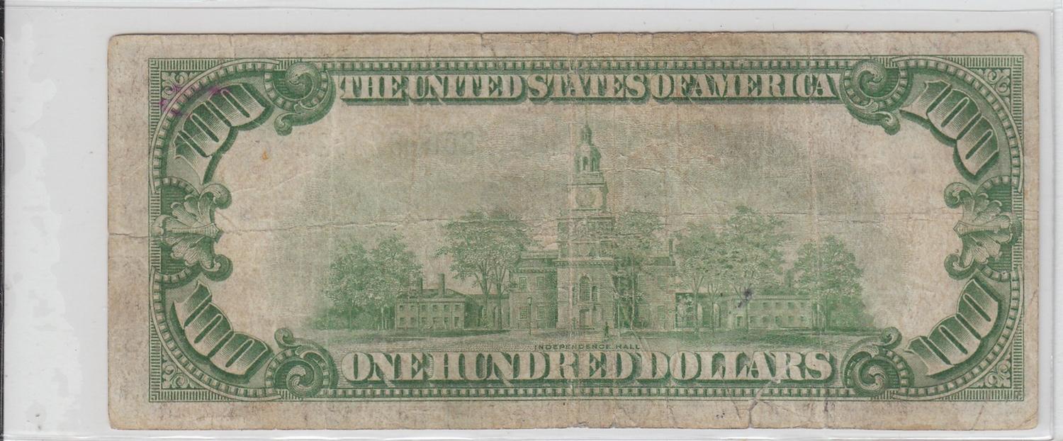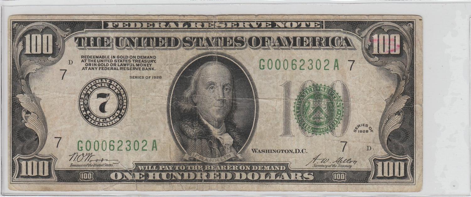 $100 NUMERICAL REDEEMABLE IN GOLD 1928