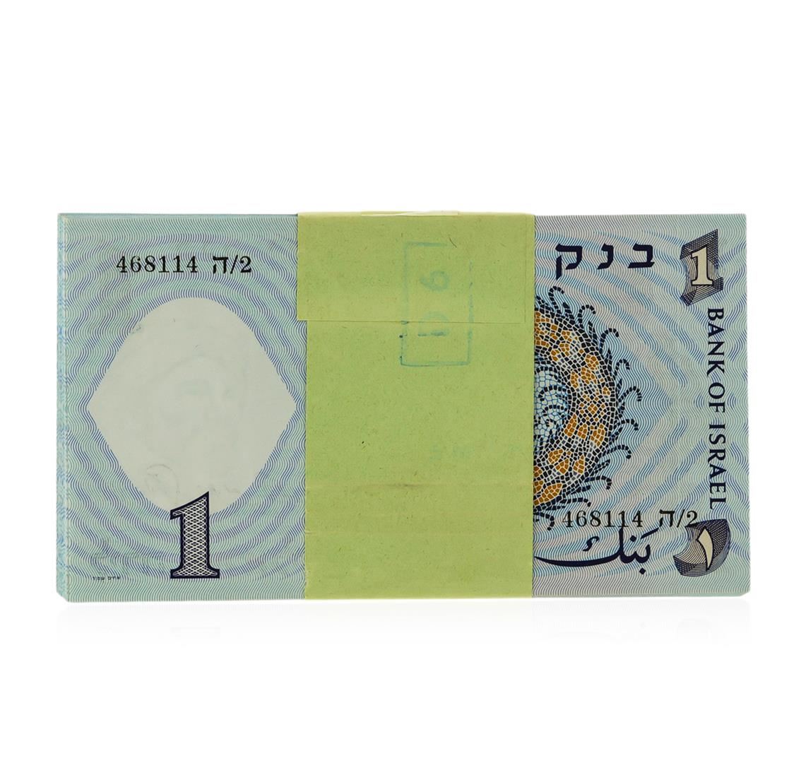 One pack of (100) Original 1958 Bank of Israel 1 Lira Notes Uncirculated.