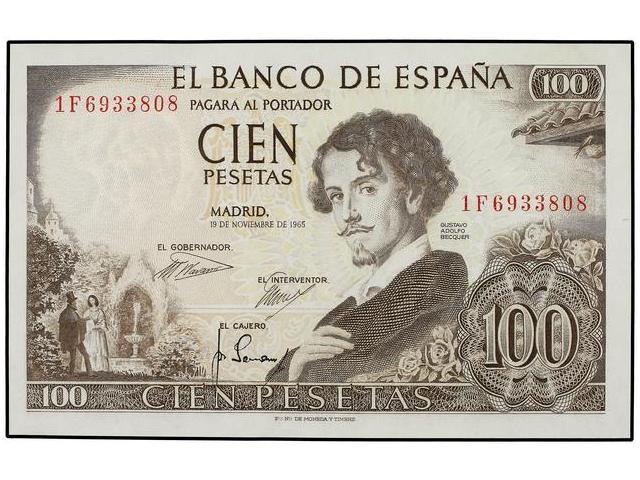 100 Pesetas. 19 Noviembre 1965. Bécquer. Serie 1F. Ed-D71a; LB-280a. SC-.