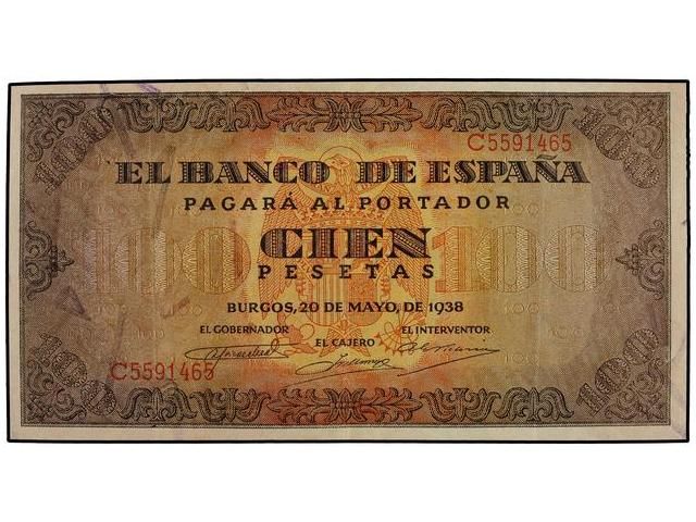 100 Pesetas. 20 Mayo 1938. Casa del Cordón. Serie C. Ed-D33a. MBC+.