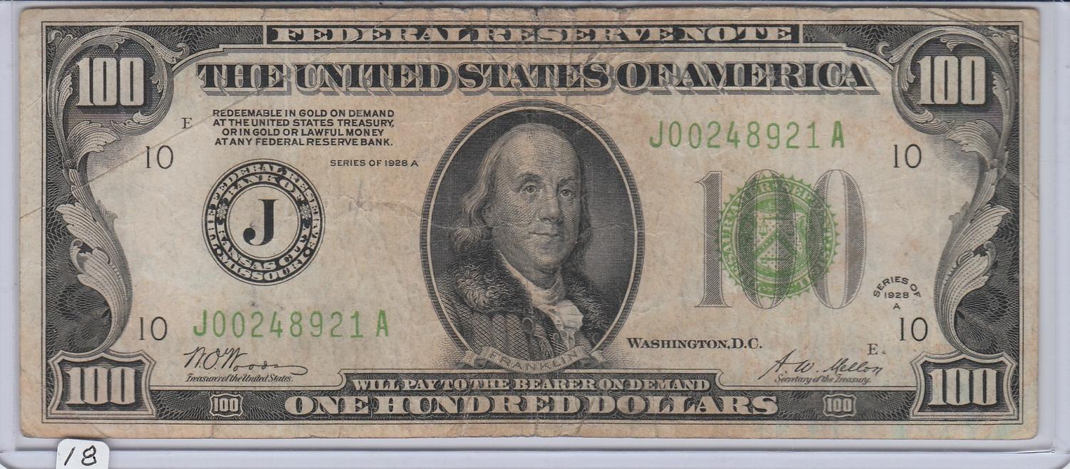 $100 REDEEMABLE IN GOLD 1928 A FRN