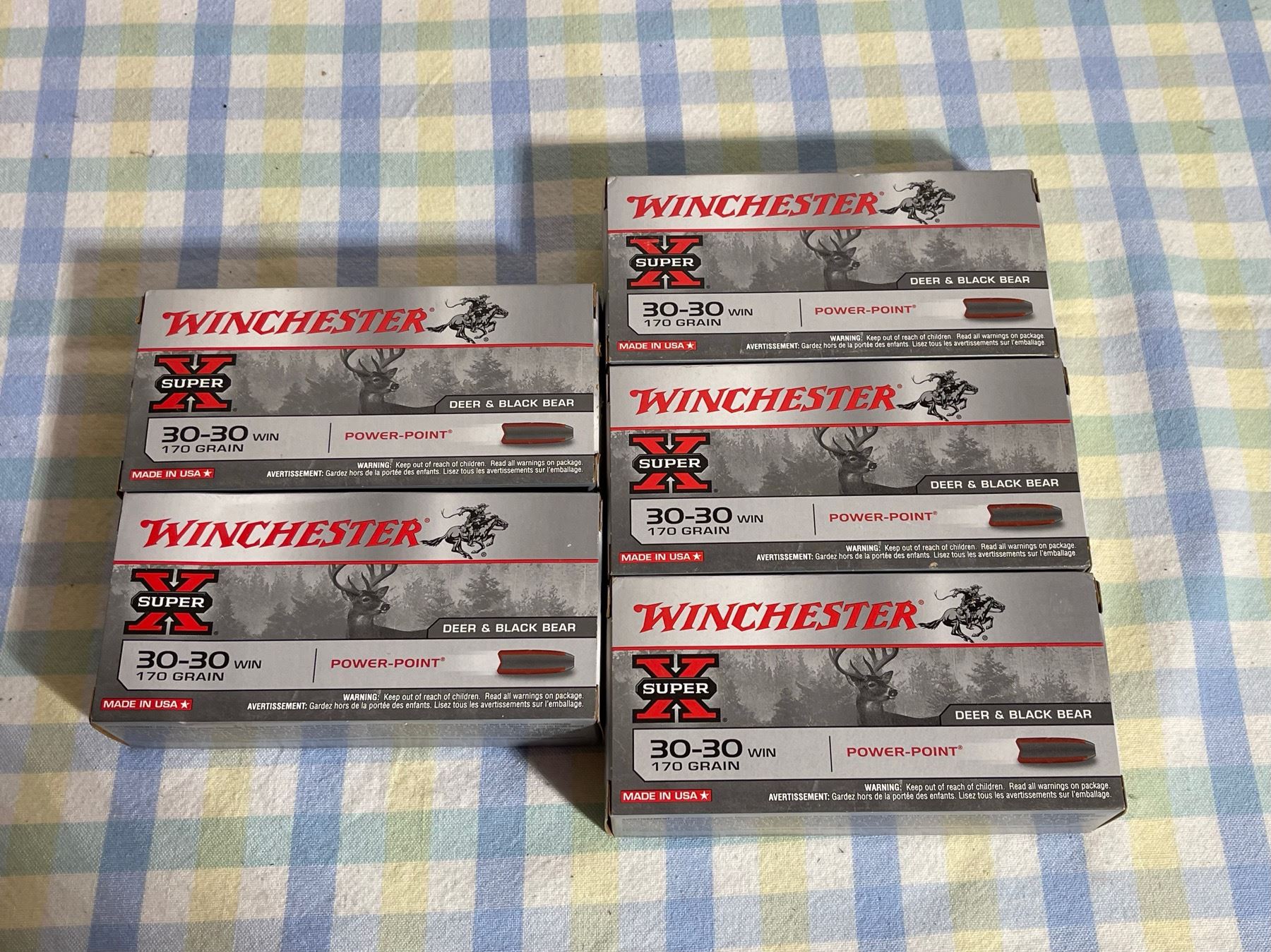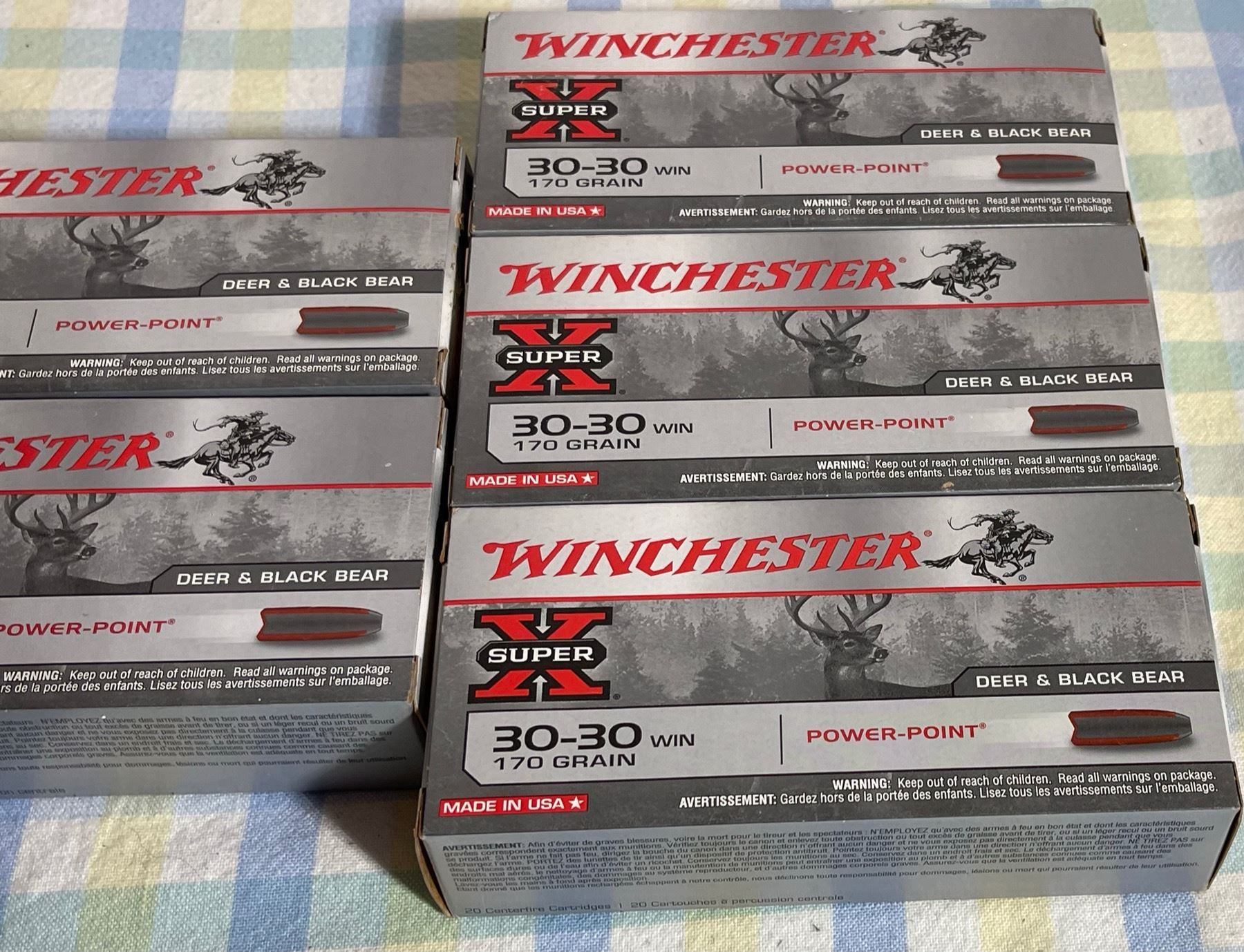 170GR 30/30 WIN WINCHESTER SUPER X CARTRIDGES. 5 FULL BOXES OF 20 CARTRIDGES.