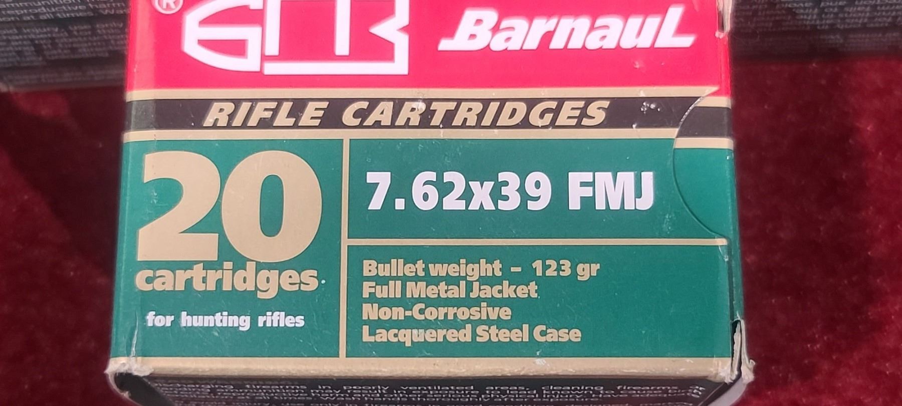 100 ROUNDS OF RUSSIAN NON-CORROSIVE 7.62 X 39 FMJ 123GR