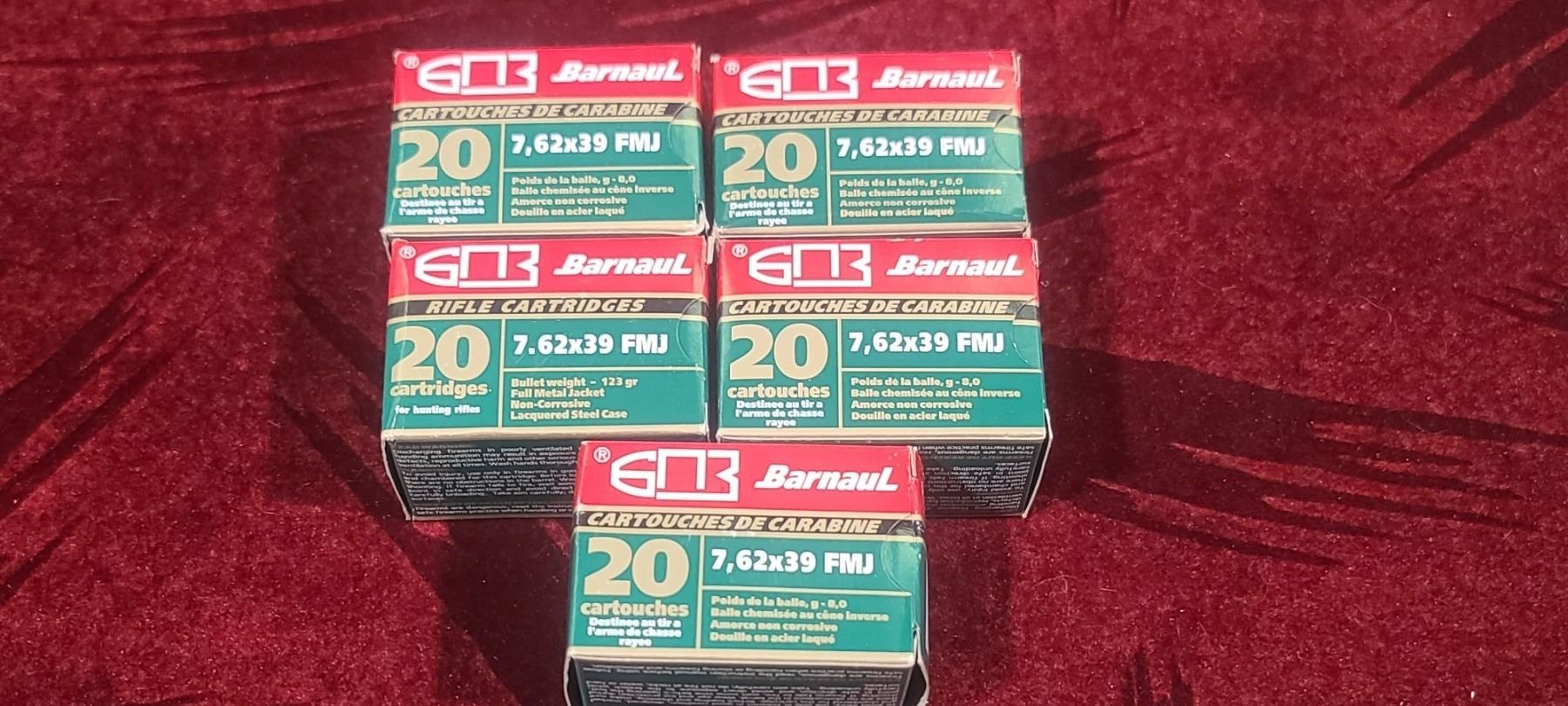 100 ROUNDS OF RUSSIAN NON-CORROSIVE 7.62 X 39 FMJ 123GR