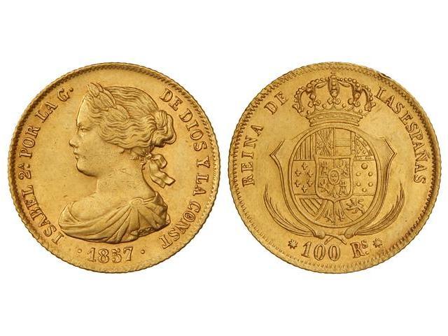 100 Reales. 1857. BARCELONA. (Golpecito en gráfila). Cal-10. EBC.