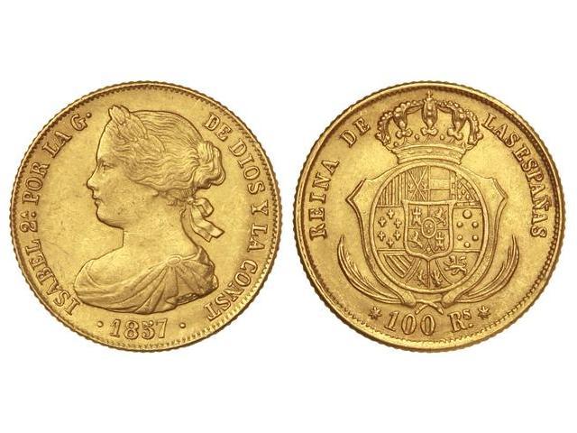 100 Reales. 1857. SEVILLA. (Pequeños golpecitos). Cal-35. MBC+.