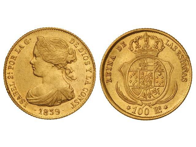 100 Reales. 1859. SEVILLA. (Golpecito en gráfila). Cal-37. EBC.