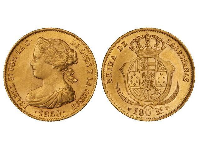 100 Reales. 1860. BARCELONA. Cal-13. SC-.