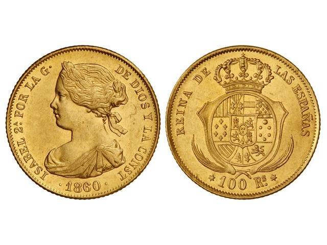 100 Reales. 1860. MADRID. Cal-25. SC-.