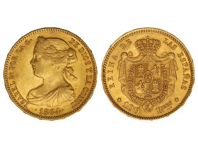 100 Reales. 1864. MADRID. Cal-29. MBC+/EBC-.