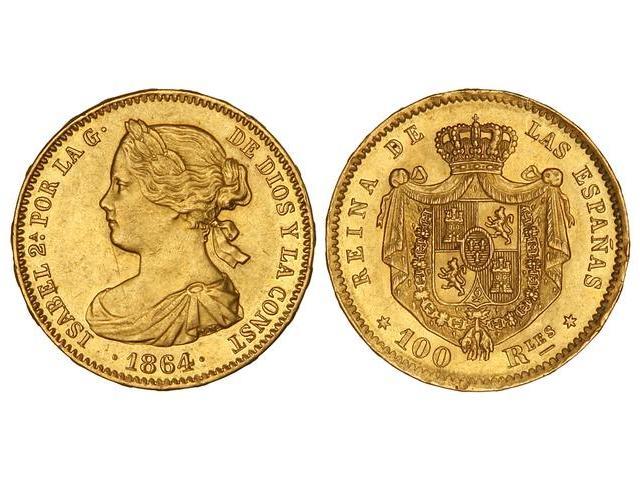 100 Reales. - 1864. - MADRID. - (Rayita en anverso). Cal-29. EBC-/EBC. - -