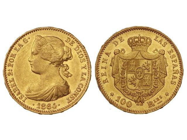100 Reales. 1864. MADRID. Restos de brillo original. CCT-29. EBC-/EBC.