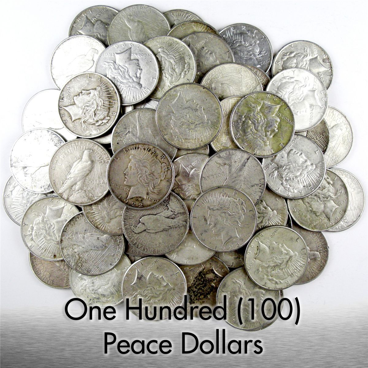 100 SILVER PEACE DOLLARS MIXED DATES.