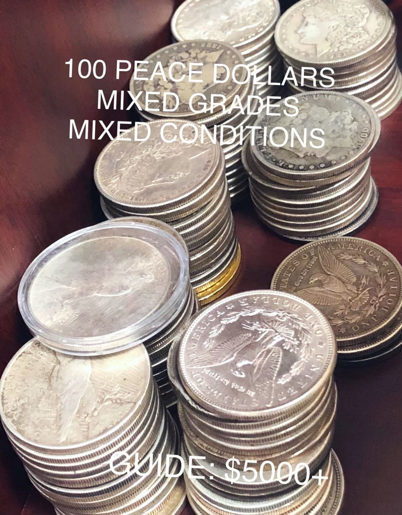 (100) Silver Peace Dollars -Mixed Dates/Conditions