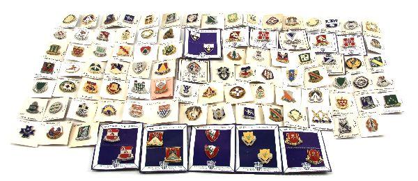 Collection of 100 various US Military unit pins and badges. All are sorted into envelopes, and pined to a card identifying each. All in excellent unworn condition.