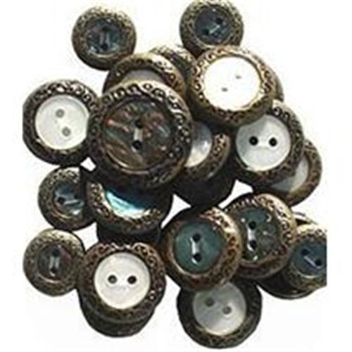MOTHER OF PEARL STYLE BUTTONS - Set of?s, ½? to 1? diameter, edged by rim of fancy brass