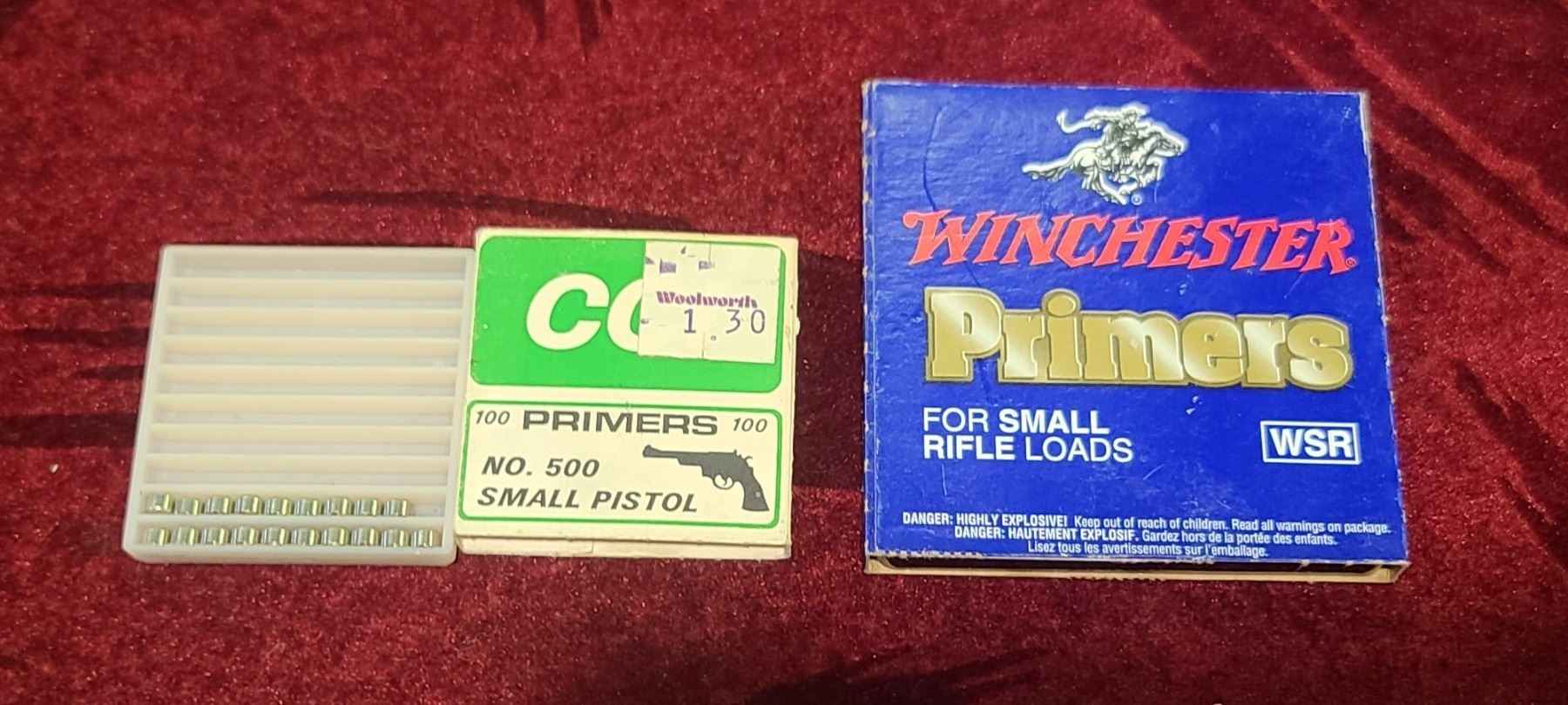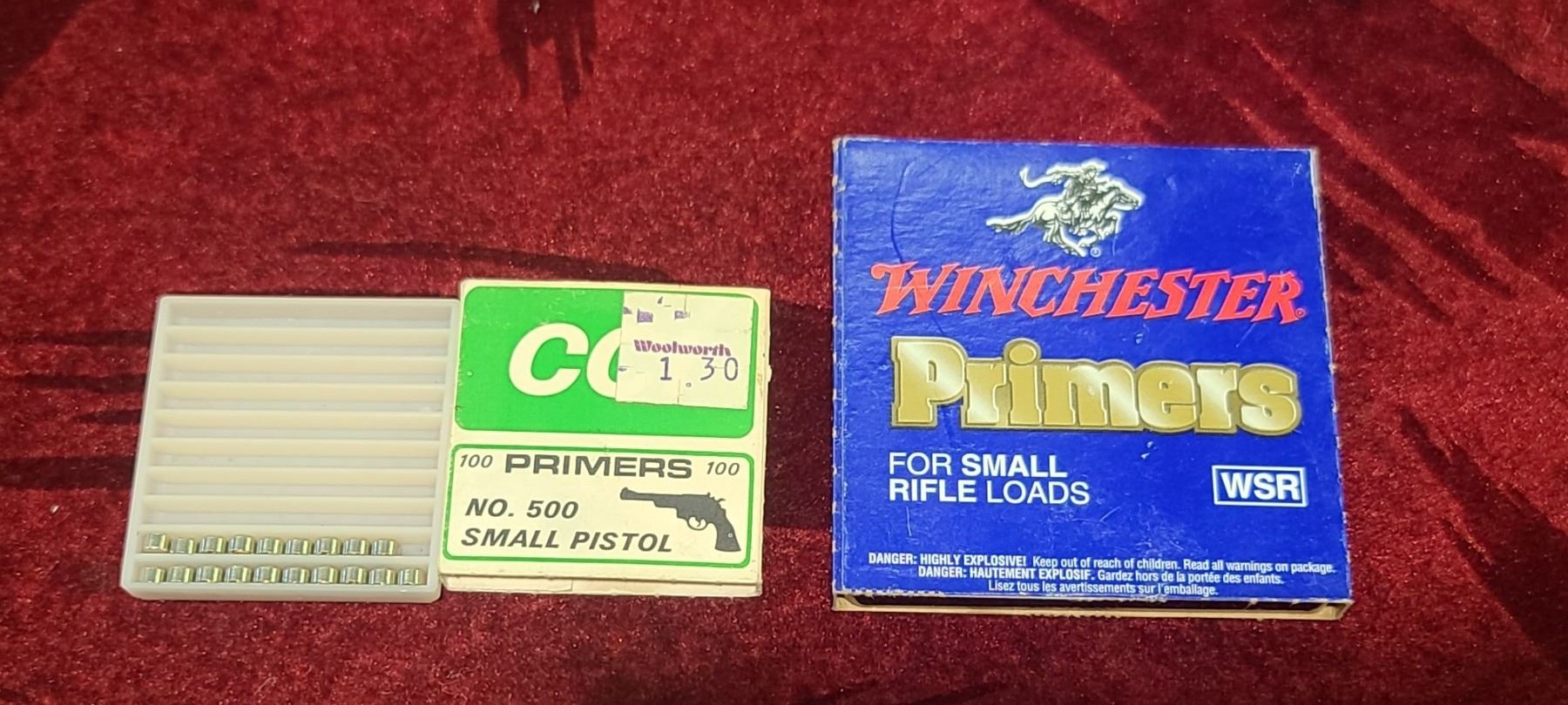 100 WIN SMALL RIFLE PRIMERS AND 19 SMALL PISTOL CCI PRIMERS