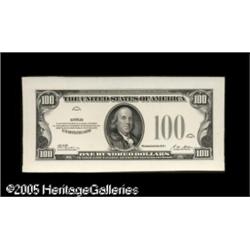 <B>$100 Wide Margin 1928 Gold Certificate Face Specimen. Superb Gem New.</B></I> The perfect mate to the $50 above. Identical in every respect. Lot:15578
