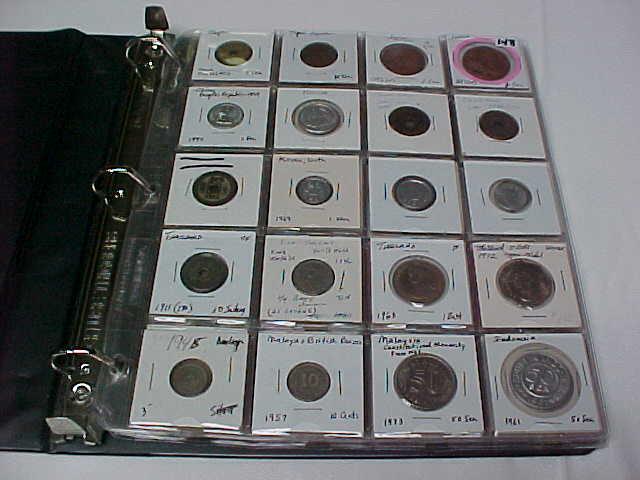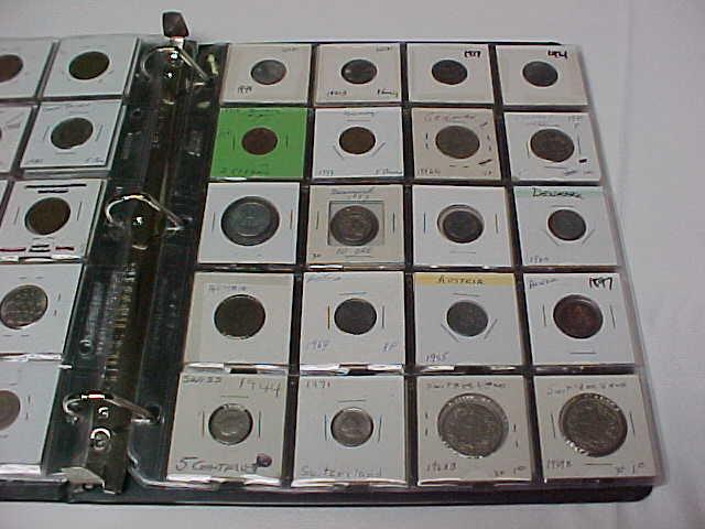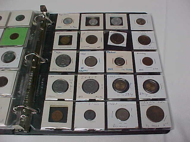 100 World Coins in notebook, some 1800's, 26 countries