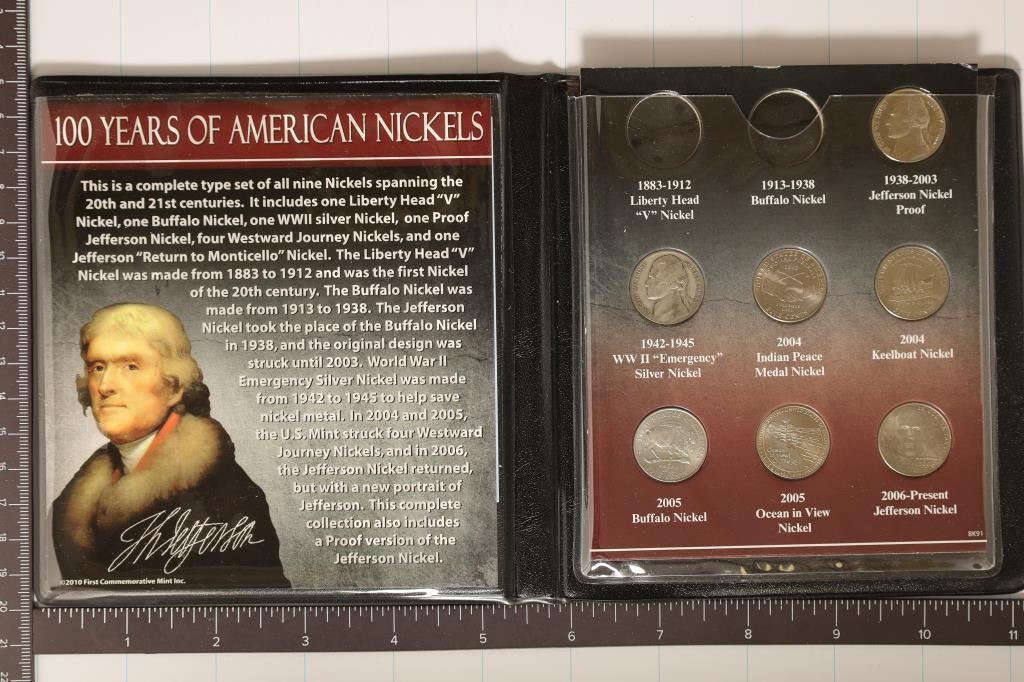 INDIAN PEACE, KEELBOAT, BUFFALO, OCEAN IN VIEW AND CURRENT JEFFERSON 1976-S NICKEL IN BLACK FLIP FOLIO