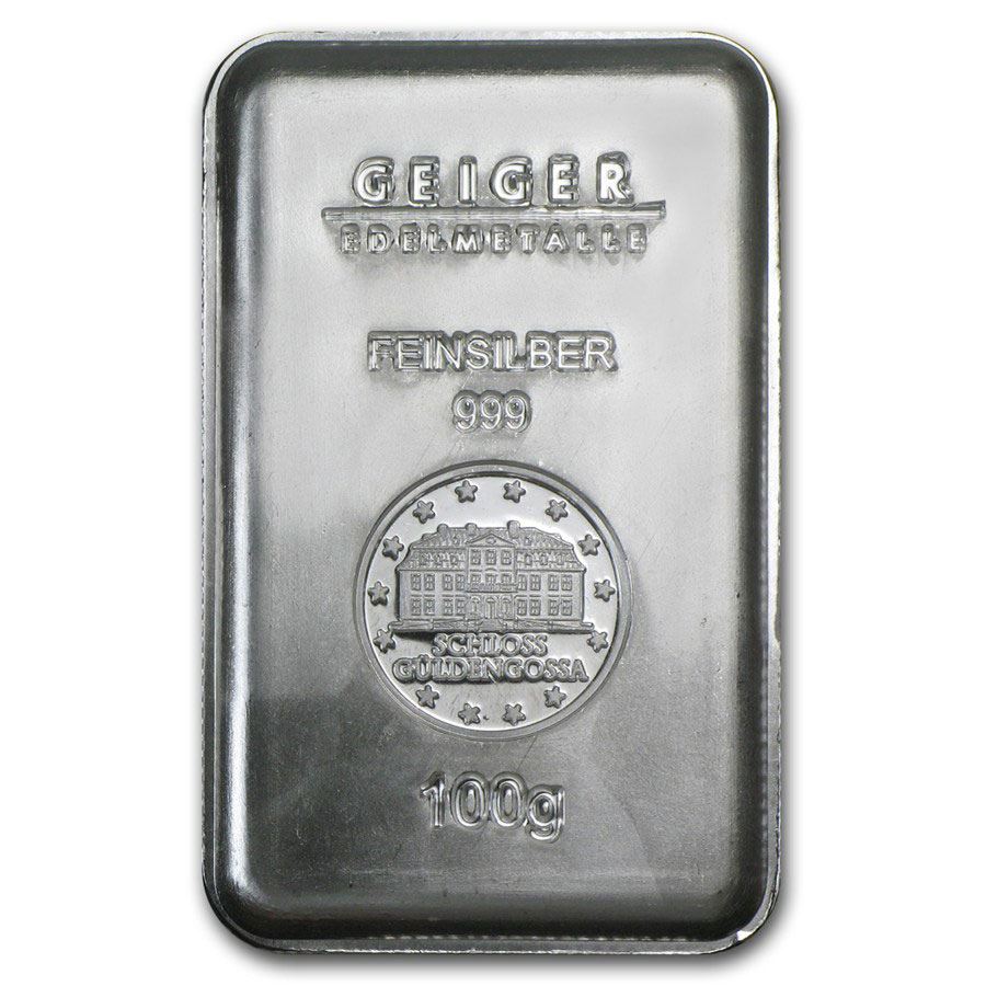 100 gram Silver Bar - Geiger (Security Line Series) **|**|** 100 gram Silver Bar - Geiger (Security Line Series)