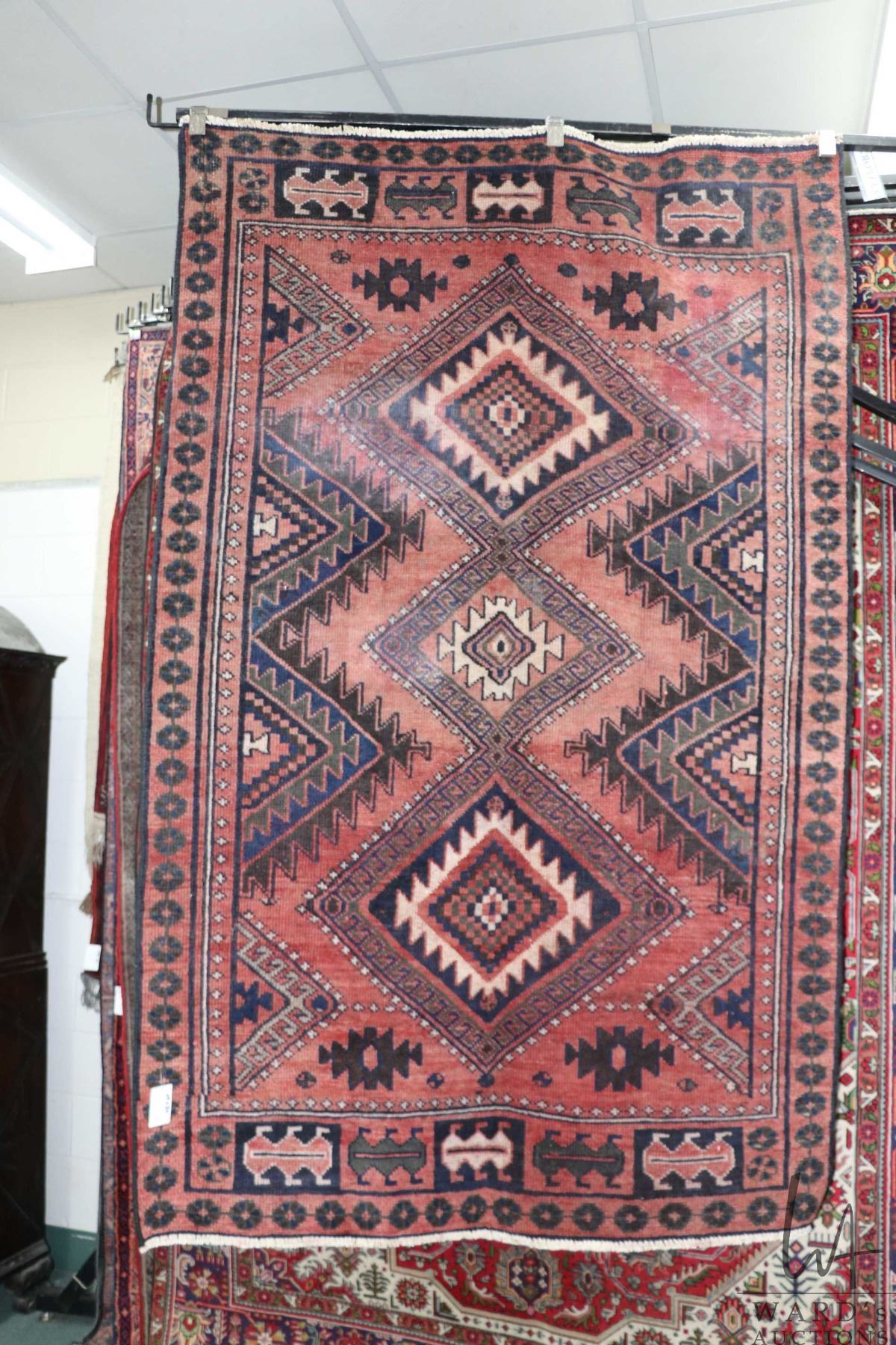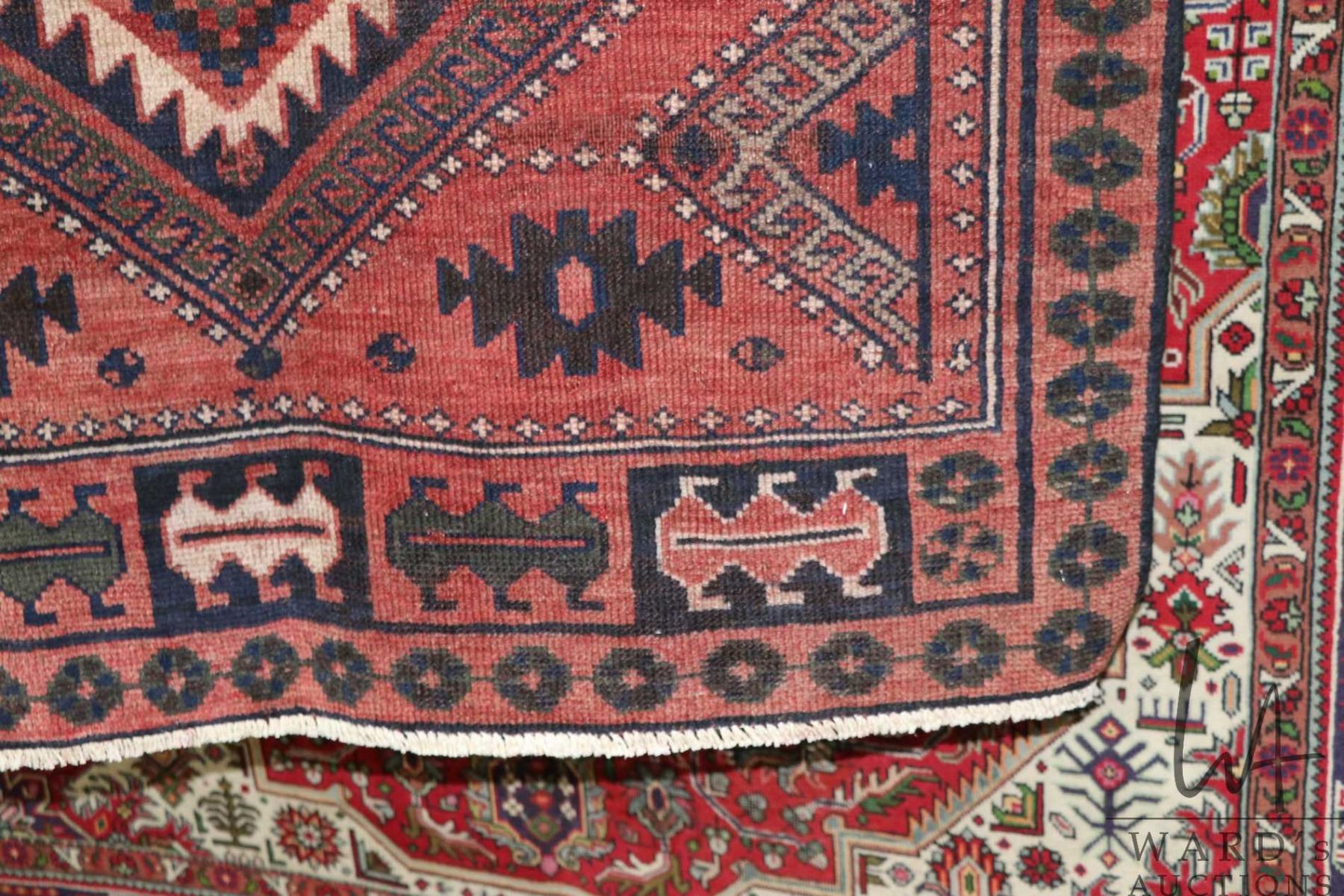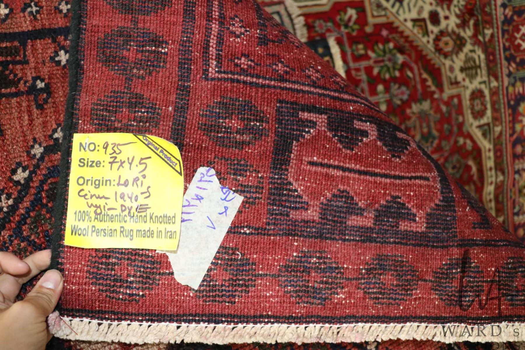 100% hand made Iranian carpet "Lori" with triple medallion, red background and highlights of cream, blue and green, 49" X 84"