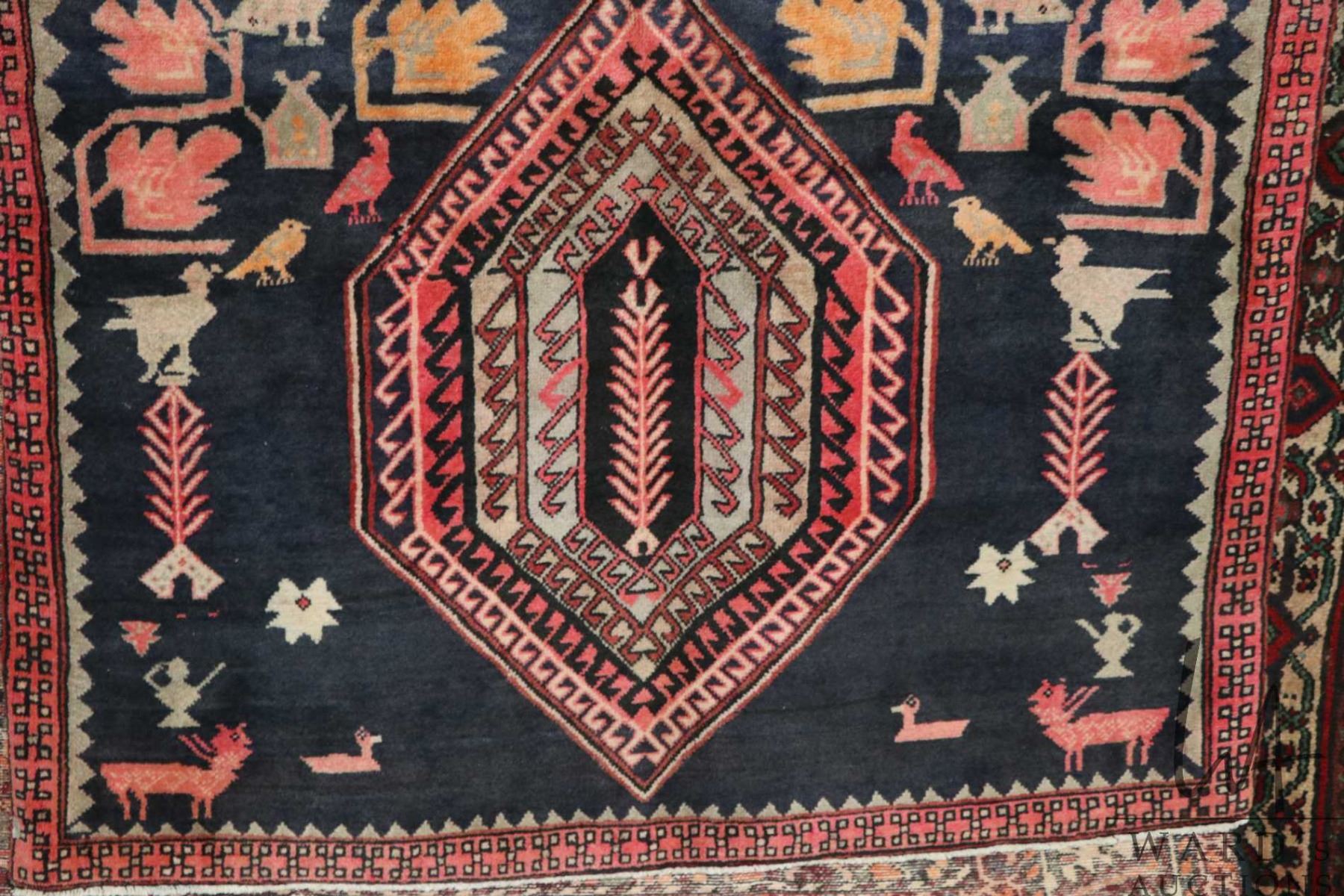 100% hand made Iranian carpet runner "Ardebil" with birds and multiple medallions, blue background a