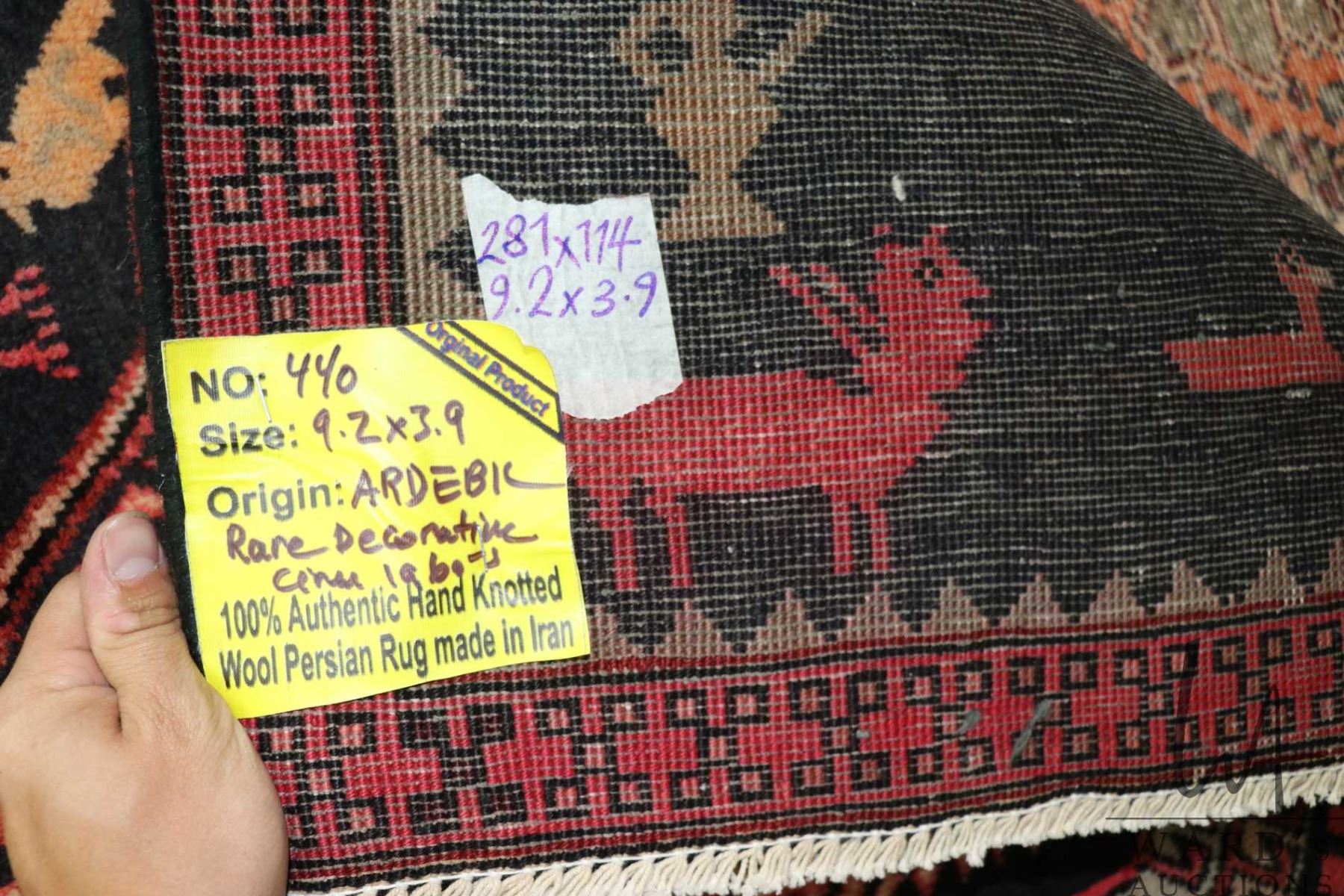 100% hand made Iranian carpet runner "Ardebil" with birds and multiple medallions, blue background and highlights of orange, taupe and red etc. 45" X 109"