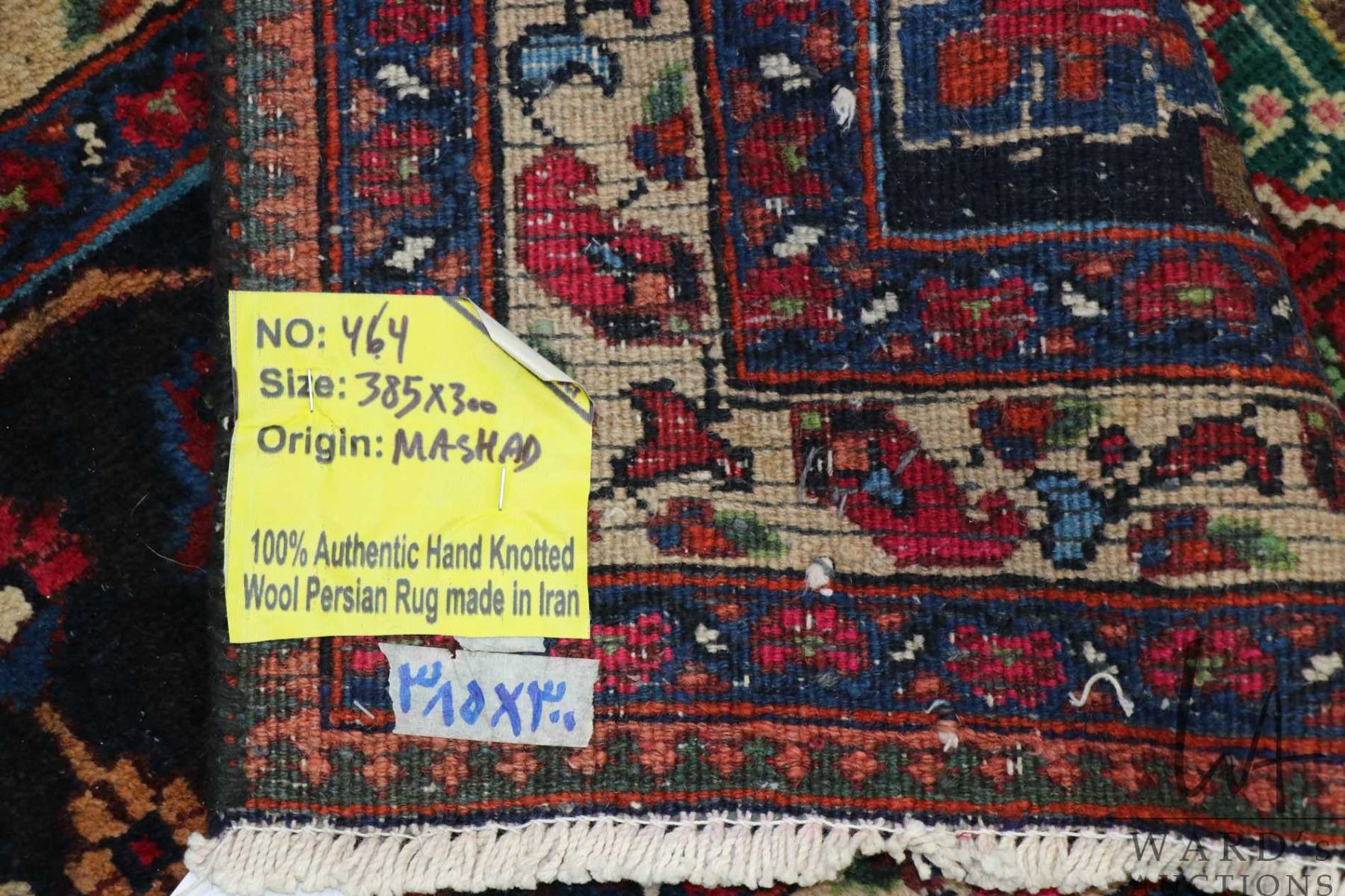 100% hand made Iranian wool carpet, Mashad, center medallion red background and highlights blues, pi