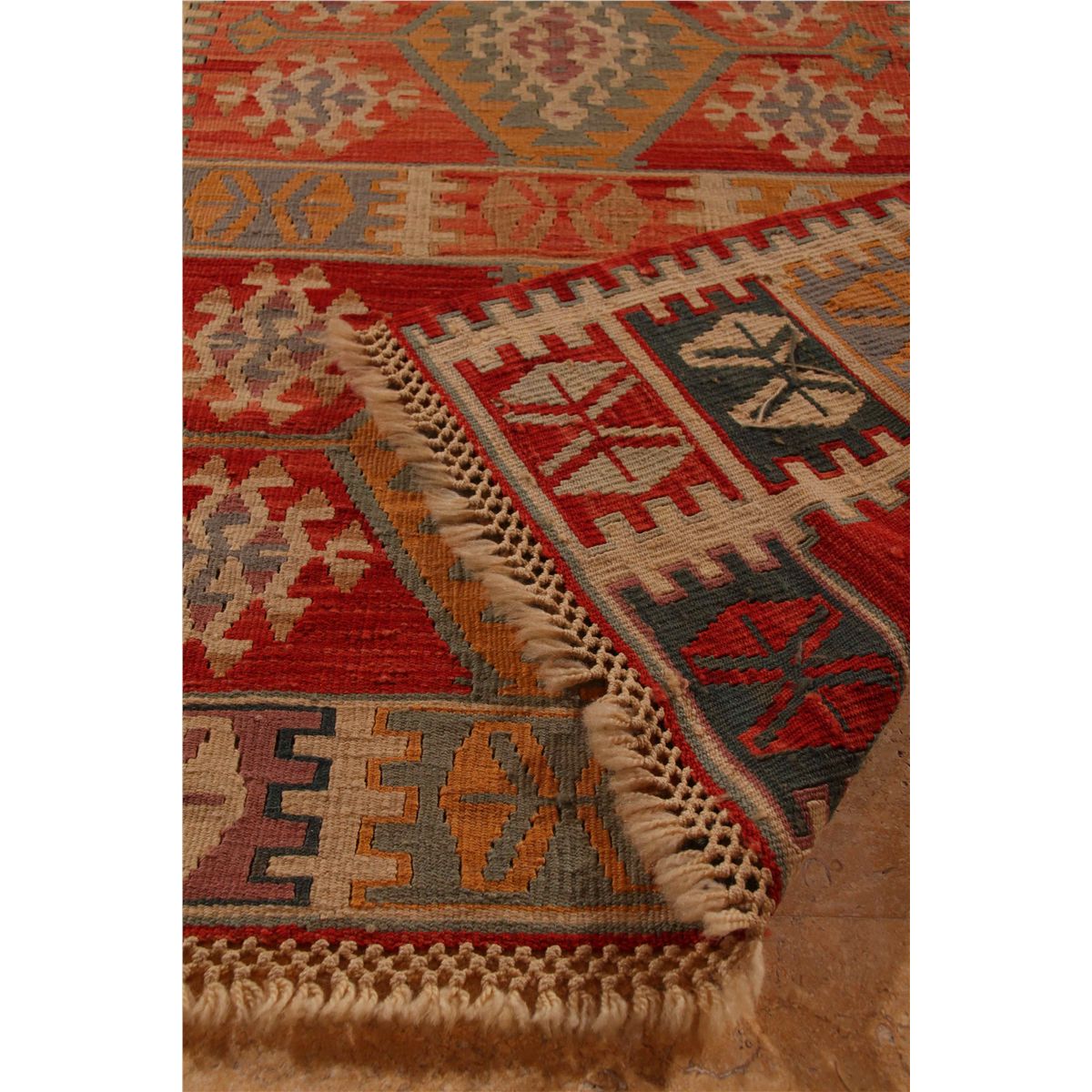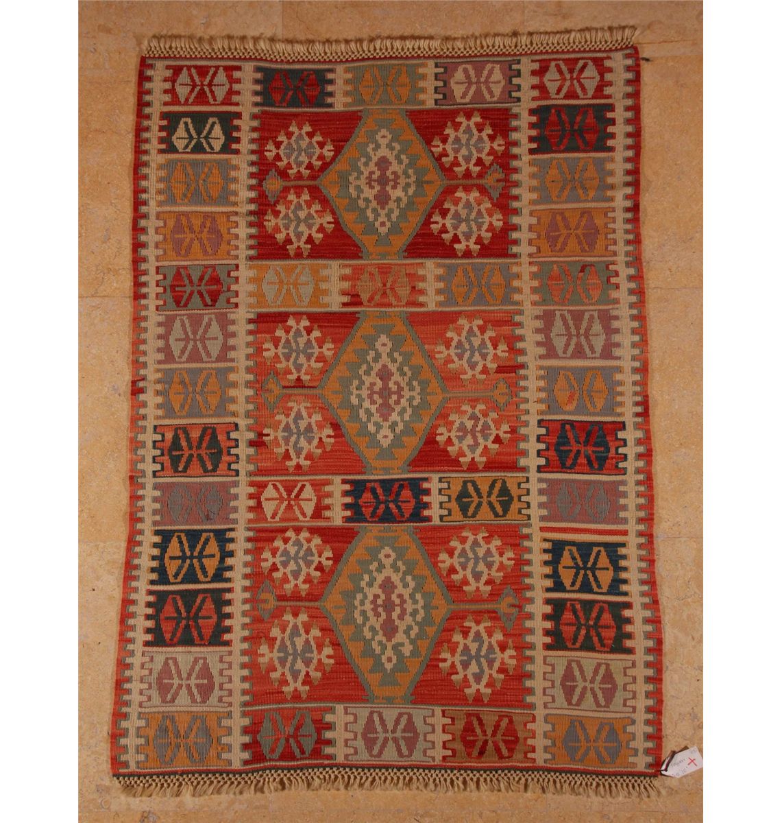 100% handspun wool, mixed with 10% angora; vegetable dye[ Width (ft/in)=4'1" , Height/Length (ft/in)=5'10" , Depth (in)= 0, Weight (lbs)= ] 6.5 Kayseri Central Turkey, Three Medallion Kilim,