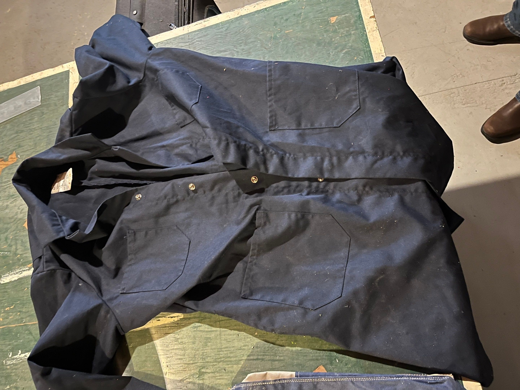 100% pure down Winter Parka made by David S Reid LTD also includes a new pair of chainsaw chaps and blue shop coat