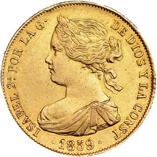 In order to comply with the current spanish legislation buyers should bear in mind that the export of coins over 100 years old require the issuance of an Export License by the Ministry of Culture, regardless of the country of destination. This process normally takes between 4 to 8 weeks.