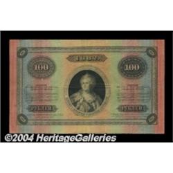 100 rubles 1882, Pick-A53. Fine. The colors are still strong on this Rainbow State Credit Note. There are a couple of pinholes, along with a couple of spindle holes that are not entirely punched out, and a minute thin spot, gracing this uncancelled note. Still attractive with a medium center fold. Listed only as "Rare" in the Krause reference. Important notice: Heritage usually auctions material at the rate of 200-250 lots per hour. On some occasions eBay Live bid software or the Internet may not be able to keep up with the pace of the auction. We recommend placing a realistic absentee bid now as insurance to avoid disappointment. Occasionally the auctioneer may eliminate or reject an eBay Live bid, and the auctioneer may also reopen a lot after the close of the eBay live bidding (usually because we missed an audience bid), and may reject your bid even if it shows you as the winning bidder. By bidding via eBay Live, you agree that Heritage may award the lot to another bidder at its sole discretion under the circumstances described above or any other reasonable circumstances. Also please note that all Heritage lots purchased through eBay Live carry a 20% Buyer's Premium. Please make sure you read the Terms and Conditions before you bid.