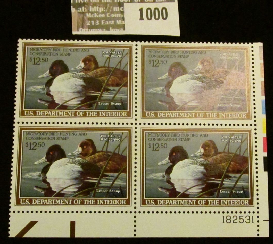 1989 Plateblock of Four RW56 U.S. Department of Agriculture Migratory Bird Hunting $10.00 Stamps, Mint condition.