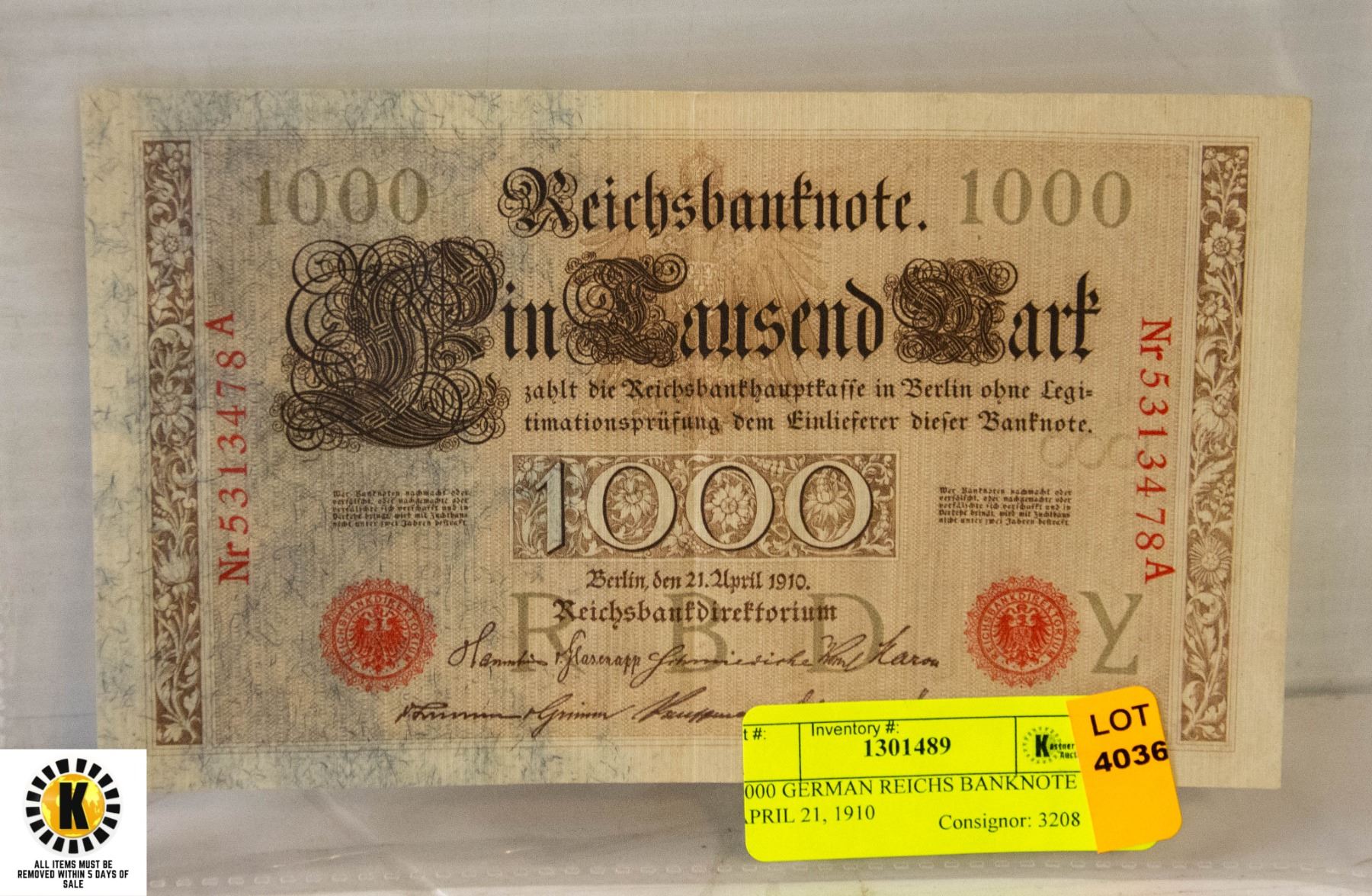 1000 GERMAN REICHS BANKNOTE APRIL 21, 1910