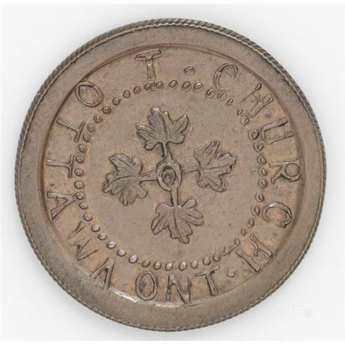 <B>Canada Thomas Church Token.</B></I> Bowman 7-22, copper, 10.1 gms, 25mm. Current market value about $100. <BR><BR><B>Important