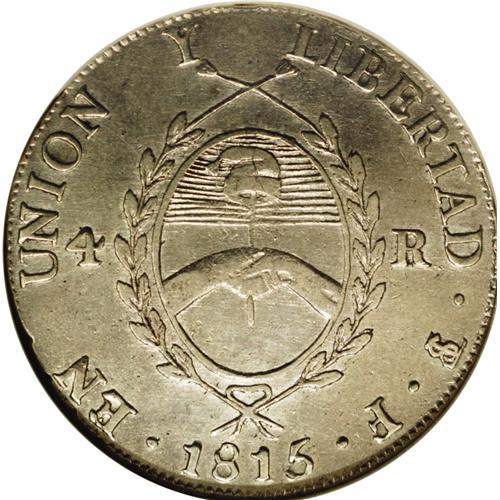 <B>Rio de la Plata. 4 Reales 1815F-PTS, </B></I>KM4, XF45 NGC, an attractive coin with considerable original mint luster and unusually problem-free surfaces. Very rarely encountered in this quality.<BR><I>From The Rio De La Plata Collection.</B></I> <BR><BR><B>Important