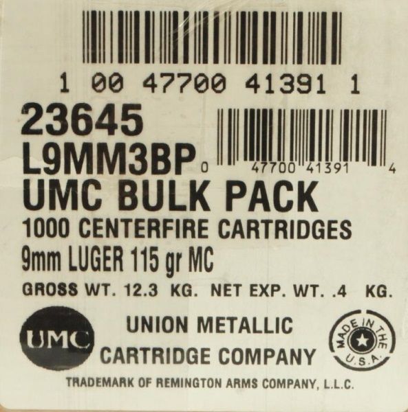 1000 Rounds Remington UMC 9mm 115Gr FMJ