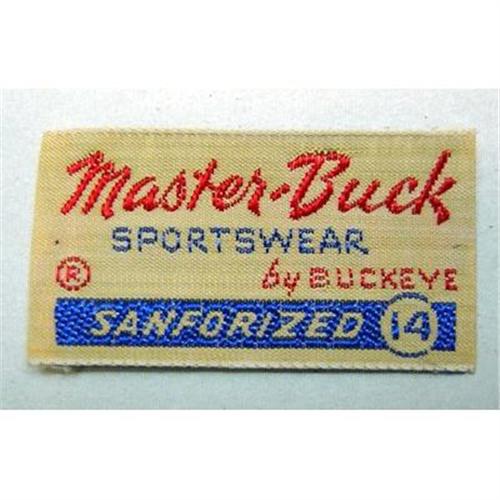 1000 Vintage 1950's Master Buck Sportswear Cloths Labels by Buckeye, comes in sizes 2-4-6-8-10-12-14-16-18, you will have your choice of 500 each size label, some sizes are limited, each about 1 3/4" wide, great old 1950's cloths labels..if no size choosen, you will receive size 16..