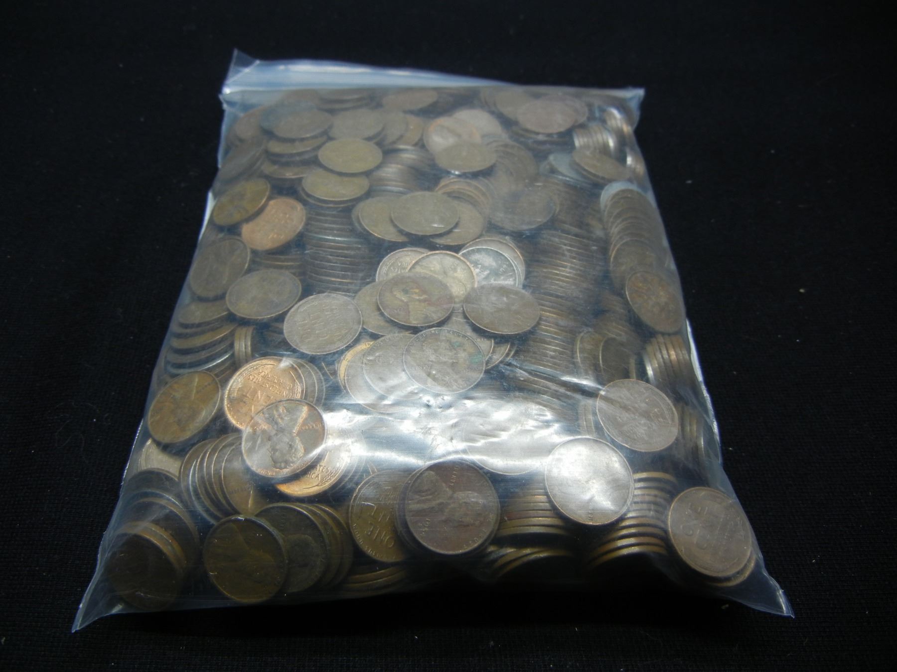 (1000) Wheat Cents in Bag Many Steel Cents Noted